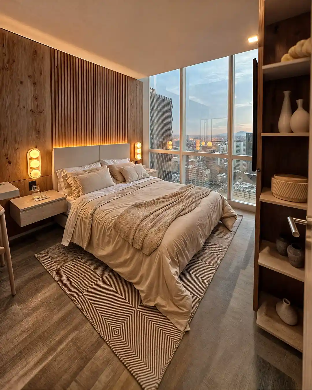 Cada habitación ha sido diseñada bajo premisas de fluidez espacial y aprovechamiento óptimo del metraje, incorporando carpinterías a medida que maximizan el almacenamiento sin comprometer la estética. El diseño de iluminación puntual y la selección de mobiliario ergonómico aseguran que cada suite sea un santuario de paz, ofreciendo una experiencia de habitabilidad superior donde la sofisticación técnica se pone al servicio del descanso profundo y la privacidad total del habitante.